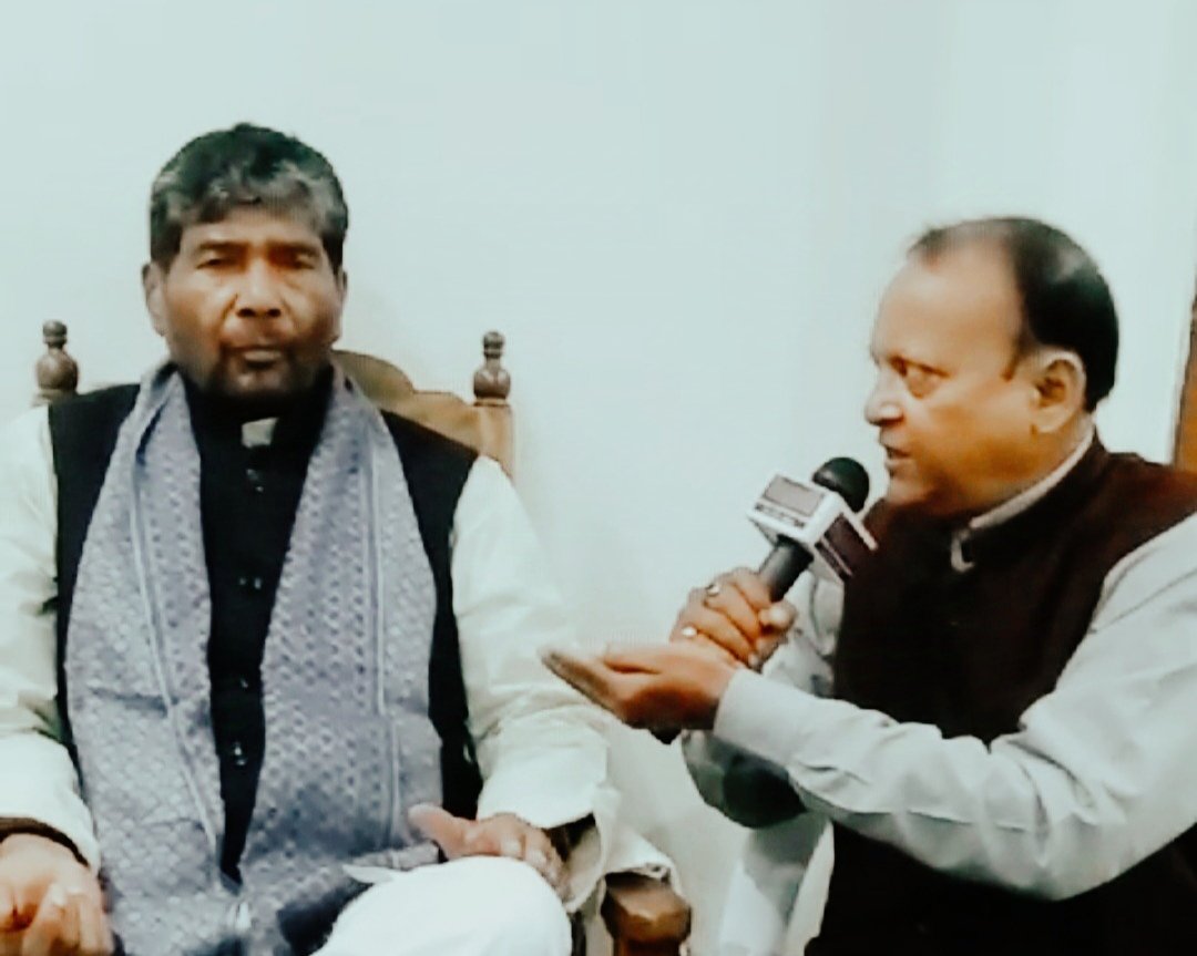 पूर्व केंद्रीय मंत्री सह रालोजपा राष्ट्रीय अध्यक्ष पशुपति कुमार पारस से वार्ता करते वरिष्ठ पत्रकार डॉ अरविन्द वर्मा