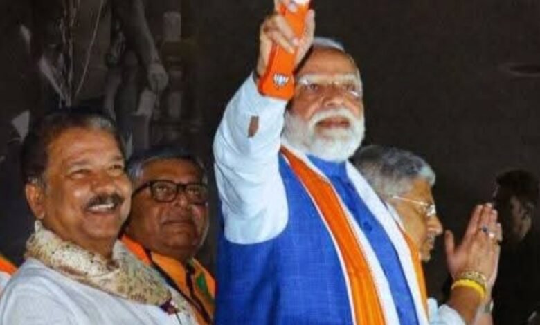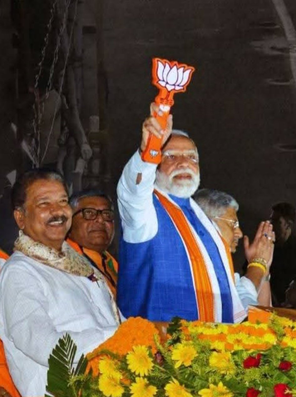 पीएम नरेंद्र मोदी के हाथ में चमक रहा था भाजपा का चुनाव चिन्ह “कमल”