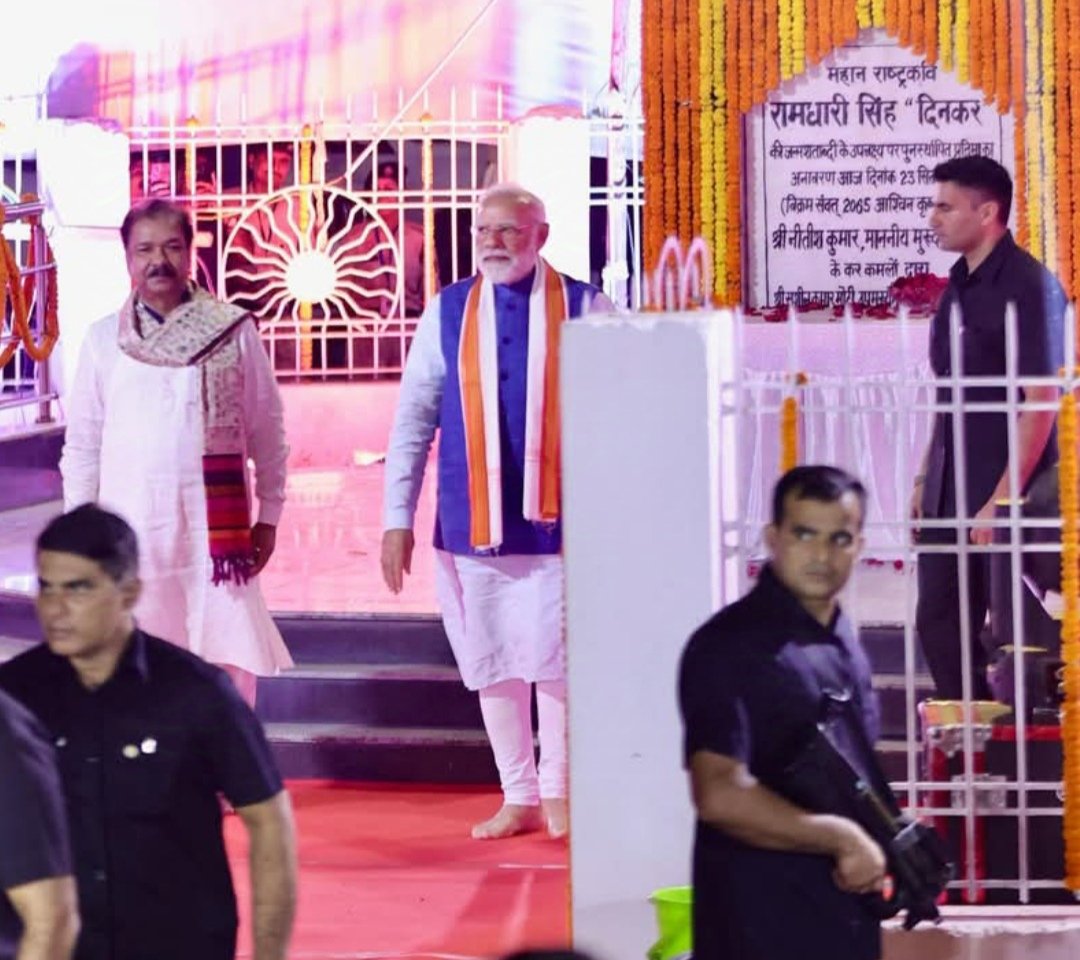 रामधारी सिंह दिनकर की प्रतिमा पर पीएम नरेन्द्र माेदी और भाजपा प्रदेश अध्यक्ष डॉ दिलीप जायसवाल ने किया माल्यार्पण