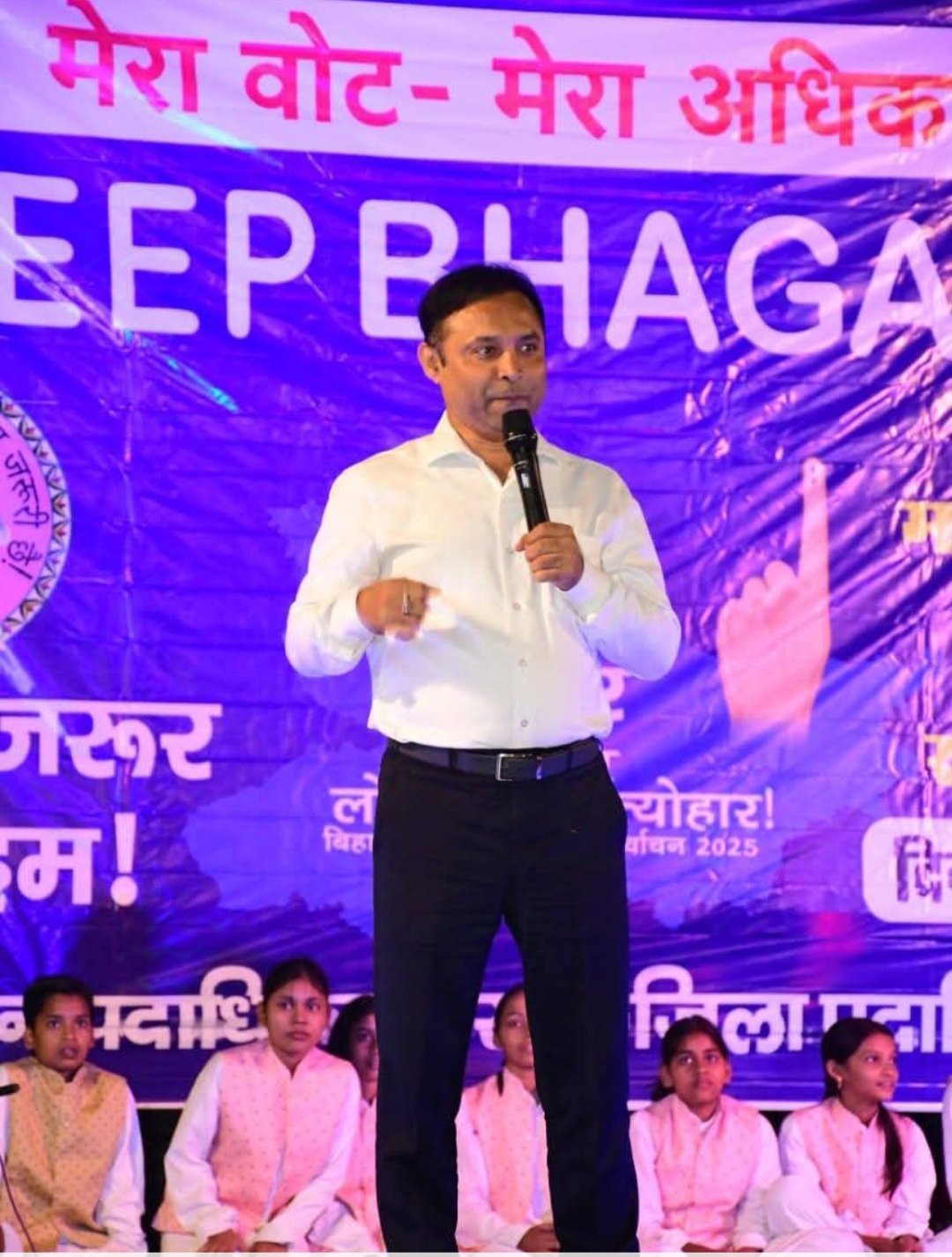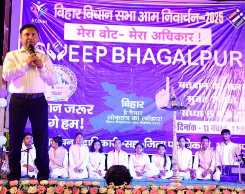 भागलपुर। बिहार विधानसभा आम निर्वाचन-2025 के अंतर्गत भागलपुर में स्वतंत्र, निष्पक्ष एवं शांतिपूर्ण वातावरण में चुनाव संपन्न कराने एवं मतदाता प्रतिशत बढ़ाने को लेकर ज़िला निर्वाचन पदाधिकारी सह जिला पदाधिकारी डॉ नवल किशोर चौधरी के नेतृत्व में ज़िला प्रशासन काफी सजग है। इसी को लेकर सैनडिस कंपाउंड के ओपन थिएटर में सांस्कृतिक कार्यक्रम एवं नुक्कड़ नाटक का आयोजन किया गया। इस अवसर पर उपस्थित दर्शकों को संबोधित करते हुए जिला निर्वाचन पदाधिकारी -सह- जिलाधिकारी डॉ0 नवल किशोर चौधरी ने कहा कि मुझे पूरी उम्मीद है कि इस बार भागलपुर की मतदाता बढ़ चढ़ कर अपने मताधिकार का प्रयोग करेगी। उन्होंने कहा 11 नवंबर 2025 को सुबह 7:00 से शाम के 6:00 तक मतदान होगा। उन्होंने भागलपुर के सभी मतदाता से आग्रह किया कि वह 11 नवंबर को अपने मताधिकार का प्रयोग करें। उन्होंने कहा मतदान करने में ज्यादा वक्त नहीं लगता है। बूथ पर सारी सुविधाएं उपलब्ध हैं, वहां पेयजल, शौचालय, रैम्प, बिजली के अलावा मतदाता की सहायता के लिए आंगनबाड़ी सेविका, सहायिका एवं आशा कार्यकर्ता है। ताकि मतदाताओं को कोई असुविधा न हो सके। पुरुष और महिला मतदाता के लिए अलग-अलग लाइन की व्यवस्था है, दिव्यांगजनों एवं बुजुर्ग मतदाताओं के लिए विशेष सुविधा है। जिन्हें कोई दिक्कत है उन्हें भी सुविधा मुहैया करायी जाएगी। इसलिए उन्होंने तमाम मतदाताओं से आग्रह किया कि वे अपने मताधिकार का प्रयोग करें। 1 मिनट, एक उंगली और 5 साल निश्चित रहें। उन्होंने वहां उपस्थित दर्शकों एवं युवाओं से 11 नवंबर को स्वयं मतदान करने तथा अपने पड़ोसियों एवं स्वजनों को भी मतदान के लिए प्रेरित करने की अपील की। कार्यक्रम में उप विकास आयुक्त प्रदीप कुमार सिंह, नगर आयुक्त शुभम कुमार, अनुमंडल पदाधिकारी नवगछिया ऋतुराज प्रताप सिंह, सहायक समाहर्ता जतिन कुमार, जिला शिक्षा पदाधिकारी राजकुमार शर्मा, स्वीप के नोडल पदाधिकारी सह डायरेक्टर एनईपी अमर कुमार मिश्रा, डायरेक्टर डीआरडीए दुर्गा शंकर, होमगार्ड के जिला समादेष्टा एवं जिले के अन्य पदाधिकारी गण तथा लगभग ढाई हजार दर्शक गण उपस्थित थे।