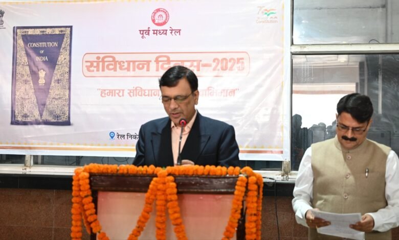 हाजीपुर। भारतीय संविधान को अंगीकार किये जाने की 76वीं वर्षगांठ के अवसर पर 26 नवंबर को पूर्व मध्य रेल में ‘संविधान दिवस‘ का आयोजन किया गया। इस अवसर पर पूर्व मध्य रेल के महाप्रबन्धक छत्रसाल सिंह के नेतृत्व में मुख्यालय, हाजीपुर स्थित प्रांगण में अधिकारियों एवं कर्मचारियों द्वारा संविधान की प्रस्तावना ’’हम, भारत के लोग, भारत को एक संपूर्ण प्रभुत्व-सम्पन्न, समाजवादी, पंथनिरपेक्ष, लोकतंत्रात्मक गणराज्य बनाने के लिए तथा उसके समस्त नागरिकों को सामाजिक, आर्थिक और राजनैतिक न्याय, विचार, अभिव्यक्ति, विश्वास, धर्म और उपासना की स्वतंत्रता, प्रतिष्ठा और अवसर की समता प्राप्त कराने के लिये तथा उन सबमें व्यक्ति की गरिमा और राष्ट्र की एकता और अखण्डता सुनिश्चित करने वाली बंधुता बढ़ाने के लिए संकल्प लेते हैं’’ पढ़ी गयी। उन्होंने कर्मचारियों को संविधान के सिद्धांतों को अपने कार्य और जीवन में अपनाने का आह्वान किया। इस अवसर पर उपस्थित सभी अधिकारियों और कर्मचारियों ने संविधान के प्रति अपनी प्रतिबद्धता व्यक्त की। संविधान दिवस के अवसर पर इसी प्रकार के समारोह दानापुर, पं. दीन दयाल उपाध्याय, धनबाद, सोनपुर एवं समस्तीपुर सहित पूर्व मध्य रेल के पांचों मंडलो, यूनिटों, कारखानों, आदि में भी आयोजित किये गये जिनमें संविधान की प्रस्तावना पढ़ी गयी।