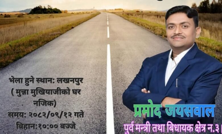 जनकपुरधाम। मधेश राज्य सरकार द्वारा पूर्व मंत्री सह विधायक प्रमोद जायसवाल के विधान सभा क्षेत्र में आगामी 27 दिसंबर 2025 शनिवार को 10 बजे “पिच रोड” प्रोग्राम का आयोजन लखनपुर में मुन्ना मुखिया घर के निकट किया जायेगा। इस पिच रोड से कटैया वाया भारतर, बिश्रामपुर, फूलकोल, रामनगरी, महुवन, एकदरवा, लखनपुर, बलुआ, सोलखपुर ग्राम के लोगों को आवागमन में सुविधा मिलेगी। उक्त जानकारी देते हुए पूर्व मंत्री सह विधायक प्रमोद जायसवाल ने मीडिया से कहा निरीक्षण और भूमि पूजन प्रोग्राम के लिए ग्रामीणों, भूपतियों पार्टी नेताओं और समाजसेवियों को कार्यक्रम में शरीक होने के लिए आमंत्रित किया जा चुका है।