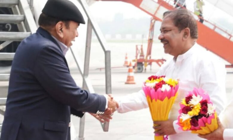 नए राज्यपाल लेफ्टिनेंट जनरल (सेवानिवृत) सैयद अता हसनैन की अगुआई उद्योग मंत्री डॉ दिलीप जायसवाल ने की, हवाई अड्डा पर